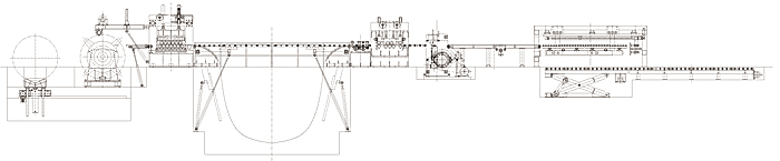 Standard devices: charging cart, uncoiler, feeding machine, position-limited device I, leveling machine, storage bin position-limited device II, precisely coordinating size forming machine, shearing plate machine, transmission working table, pneumatic discharging frame, hydraulic lifting table, hydraulic system, and electro-pneumatic system.